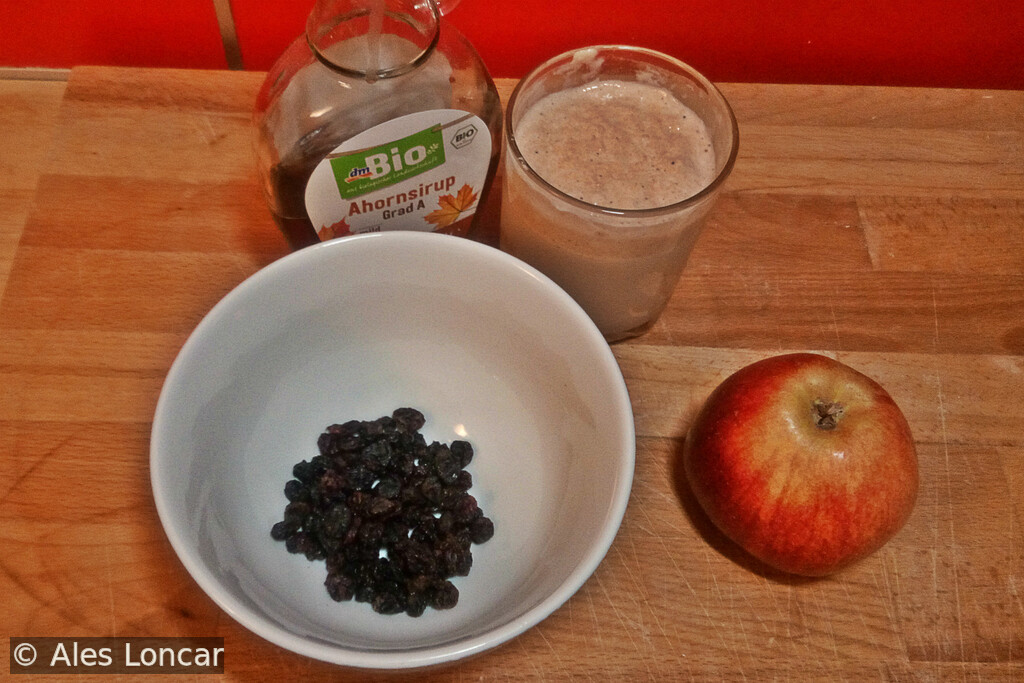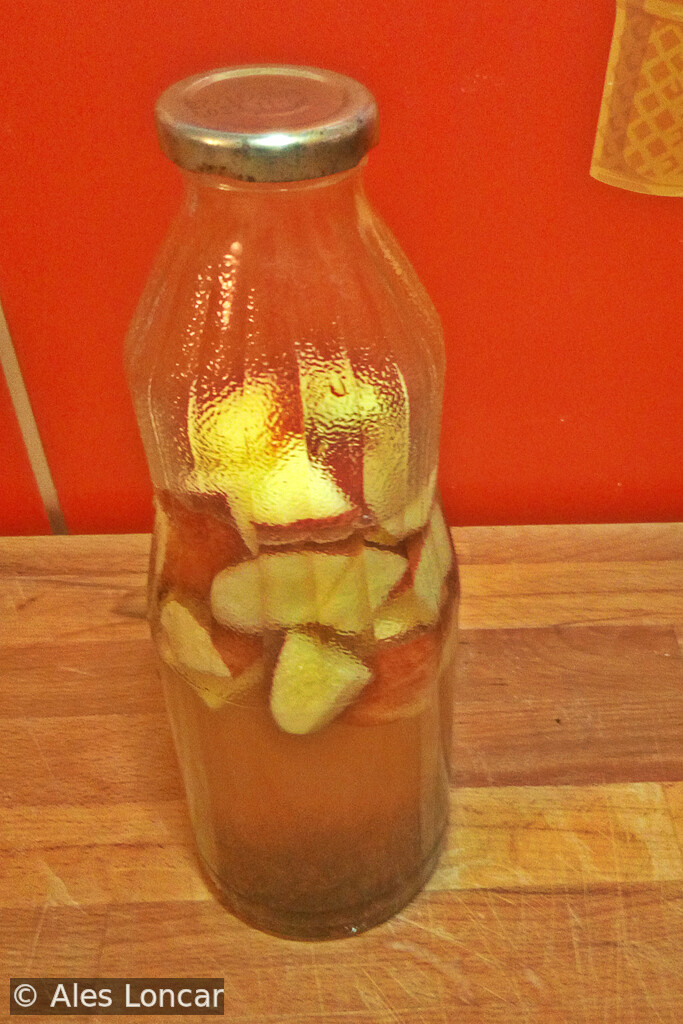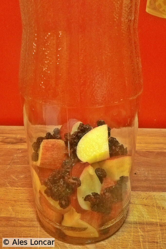- Place the apple pieces and raisins into a clean jar or bottle.