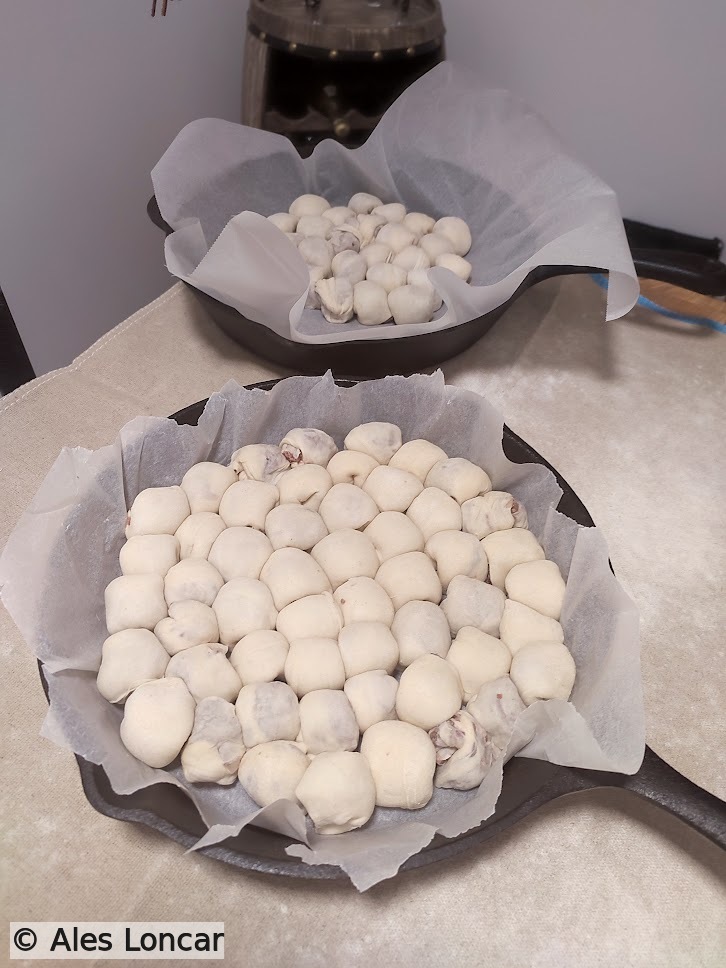 - Shape each piece into a small ball and arrange them in a baking pan.