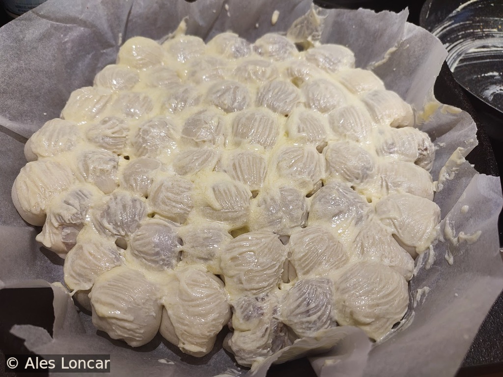 - Optionally, pour a sauce made from sour milk or yogurt mixed with finely chopped garlic over the baked mantije, then return them to the oven for a few minutes until the sauce turns golden.