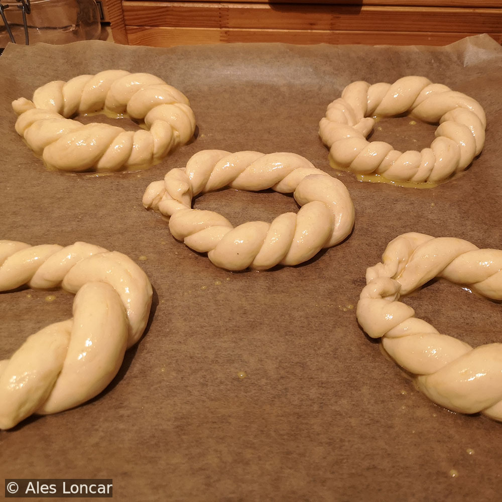 Twisted pereci rings with black cumin seeds, just out of the oven